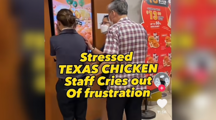 署名Usman的Tiktok用户早前上传短视频,显示这名员工在面对顾客的追问时,突然转头面向墙壁掩面痛哭,让旁人也吓了一跳。