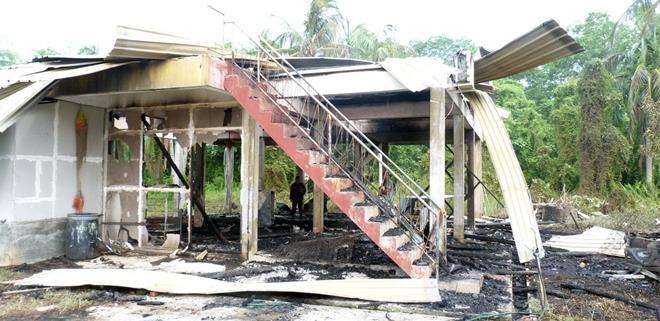 (马来奕29日讯)马来奕县东姑岭的一间双层房屋,不幸遭火魔光顾被夷为平地成为废墟,独居事主及时逃生,当局未接获有任何人在火患中受伤的报告。
