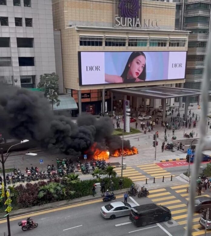 (吉隆坡19日讯)本月13日,13辆停放在吉隆坡城中城广场(Suria KLCC)外的摩哆及4台电动踏板车被烧毁,被逮捕涉案男送餐员今日在地庭被控否认有罪。