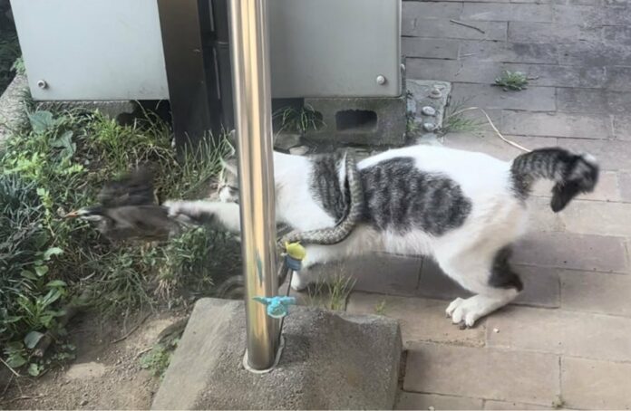 日本一名网民近日目击到三种生物大乱斗,窗户外头的花园竟然有鸟、猫咪、蛇扭打成一团,资讯量过大让网民惊呼“这就是所谓的奇美拉吗!”