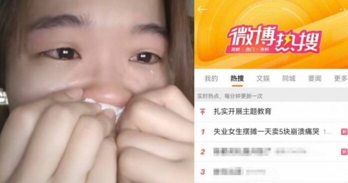 《封面新闻》报导,“失业女生摆摊一天卖5块崩溃痛哭”话题于周五(21日)登上微博热搜第一,话题阅读量超过1亿。