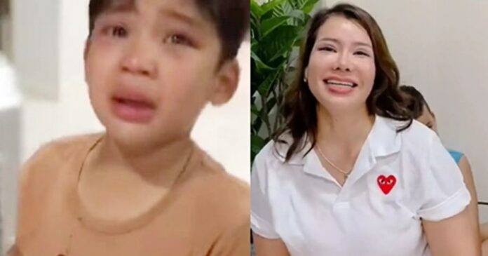 TikTok泰国网友分享一段他与儿子逗趣日常视频,年幼的儿子拿着他和妻子的婚纱照,哭着来质问自己,怀疑他搞外遇,因为照片中的女子和孩子妈妈现在的长相完全不一样,从而让孩子哭个不停。