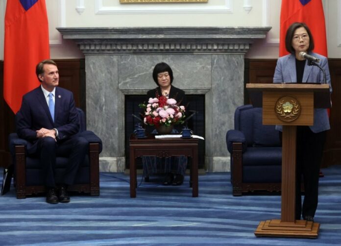 台湾总统蔡英文在总统府接见扬金一行人时表示,欢迎弗州来台设置商务办事处,持续深化双边经贸关系,也期待台湾和弗吉尼亚州能展开更多元的合作计划。