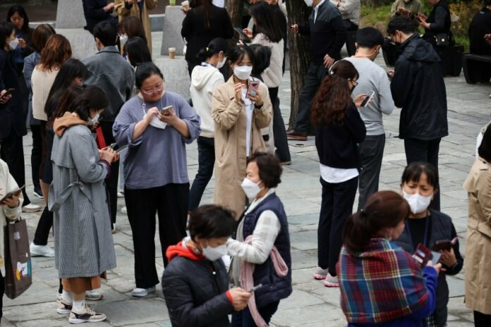 (首尔24日讯)成群结队的人,似乎漫无目的地在韩国首尔市立美术馆的前院转来转去,他们默默地擦肩而过,低头看著智能手机,手指疯狂地敲击屏幕。事实上,这是韩国最新的赚钱趋势。
