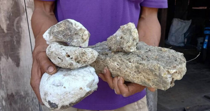 泰国一名36岁的男子在罗勇府海岸找寻贝壳和螃蟹时,意外发现了一堆散落的“银白色石头”!