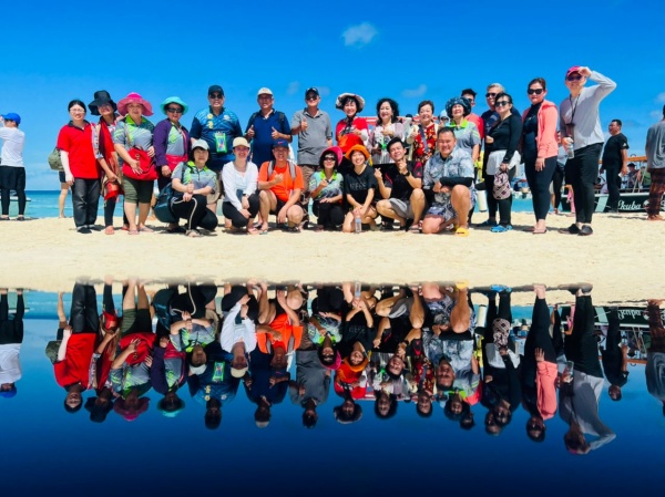 海浪扑打在船边,溅起层层浪花,四邑同乡抵达目的地之后,也迫不及待打卡拍照。特别是总会长拿督黄小娟要求所有照片都必须像她处事一样,要求完美。