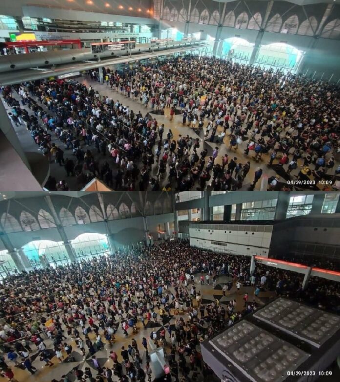 据苏丹依斯干达大厦(新山关卡)的通讯与企业组面子书今日中午12时47分发布的照片,新山关卡入境大厅今日出现大排长龙情景,让人联想“关卡演唱会”又回来了!