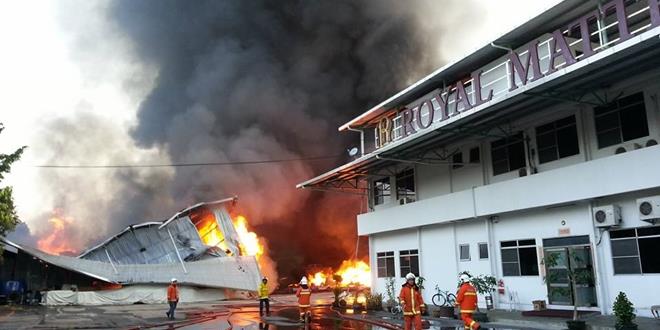 沙巴 亚庇床厂遭火神光顾 厂房坍塌1人伤 2015年10月1日 (亚庇1日讯)位於沙巴亚庇的哥隆邦皇家名床厂发生火灾,大火从今早7时燃烧至今,被大火烧毁的厂房宣告坍塌,目前有一人受伤且火势受控。Advertisement 有关当局披露於凌晨五时接获投报。 消防队也派出10辆以上的消防车扑灭火势。现场也有多辆救护车、警方、民防团体与志愿部队在现场帮忙救援。