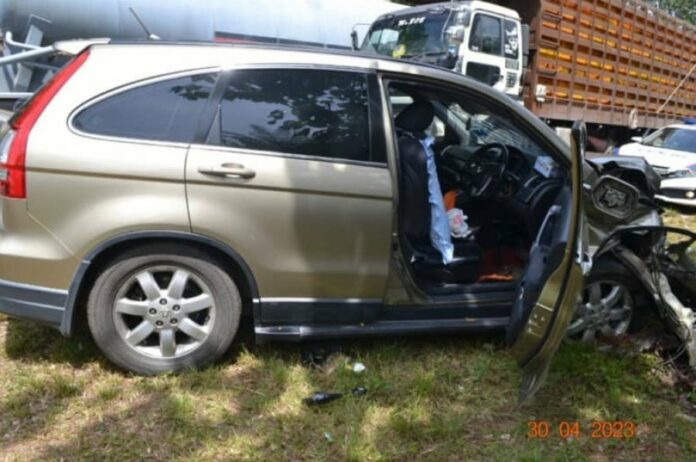 “初步调查发现,事发时,迈威轿车相信是从斯里仁保镇往双溪镭途中失控,冲向反方向车道并撞向本田休旅车。”