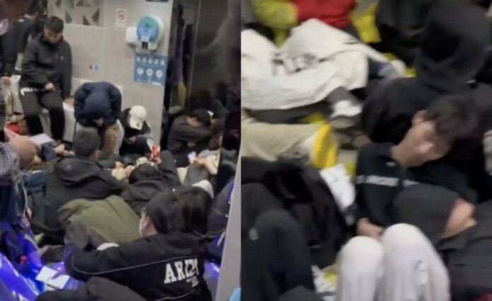 (黄山1日讯)中国五一连假上周六开始,然而首日就传出令人震惊的情况!有人就指出,大批游客在某景区的公厕内席地而睡。对此,景区官方回应,这是因为假期游客激增,不少游客又订不到酒店,没办法下才会在公厕过夜。