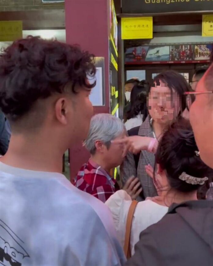 当时游客们正在排队等待检票入场,一名年长女子和一名年轻女子插队进入了队伍中。一名男子因为不满两名女子的行为,疑似拉了年轻女子的包包,随后两名女子开始对男子进行怒斥。