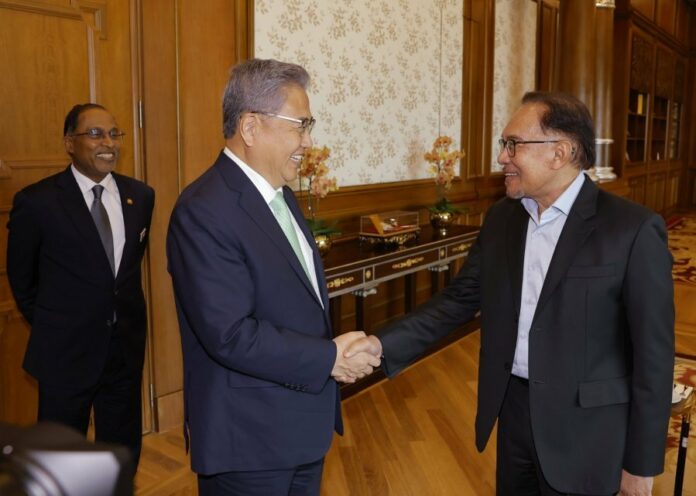 (布城2日讯)首相拿督斯里安华今日在首相署接见韩国外交部长朴振,两人会面将近一小时,讨论加强两国关系的合作。