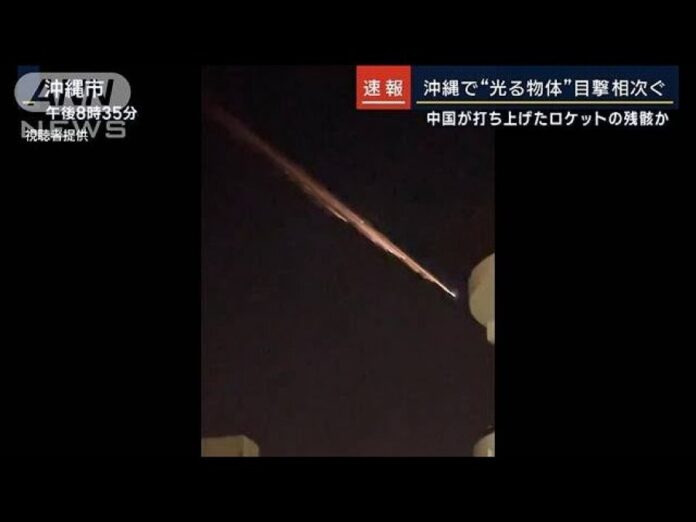 中央社根据日本电视台与朝日电视台报导,周三晚间8时30分左右,民众相继目击到冲绳县等地的天空出现带有明亮轨迹并缓慢横越夜空的火球般物体,相关影像已被分享到网络上。