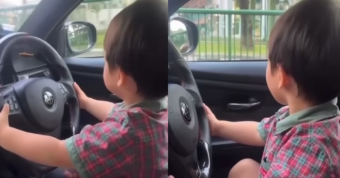 8视界新闻网报导,面子书页面Complaint Singapore周二(9日)发布一则视频,一名男童坐在驾驶座位上,双手握著方向盘,从车窗外的画面可见,车辆当时在路上行驶。