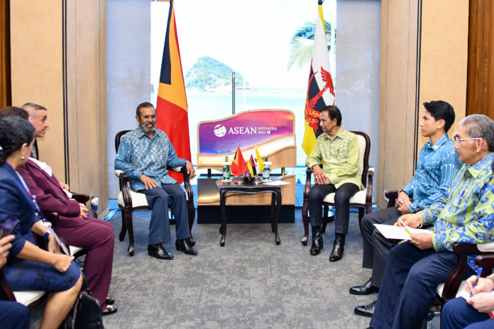 汶莱苏丹陛下今天在印尼纳闽巴霍的梅鲁奥拉会议中心分别与老挝总理宋赛西潘敦,以及东帝汶总理陶尔·马坦·鲁阿克举行双面会谈,双边会晤分别进行。