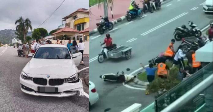 (槟城12日讯)宝马轿车撞死女摩哆骑士案件,肇祸司机及其父亲在现场被一些民众痛殴得头破血流,而根据消息,肇因或因为他们不满司机态度嚣张,事后立刻取走行车记录仪,还指有什么上庭才讲所导致。