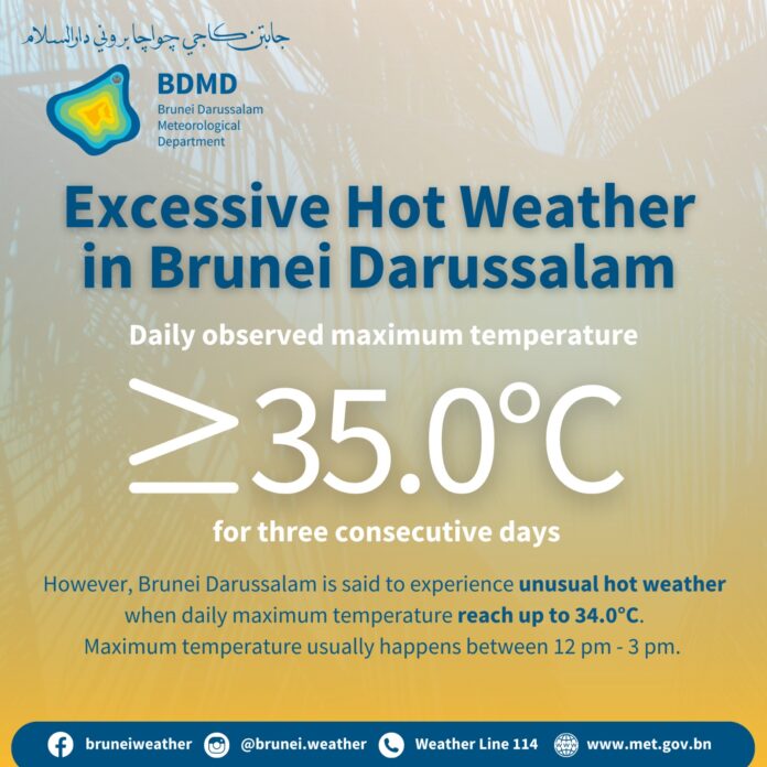 汶莱的过度炎热天气或俗称热浪事件往往发生在厄尔尼诺事件期间。汶莱的过度炎热天气定义为每日观察到的最高温度连续三天至少为35°C。
