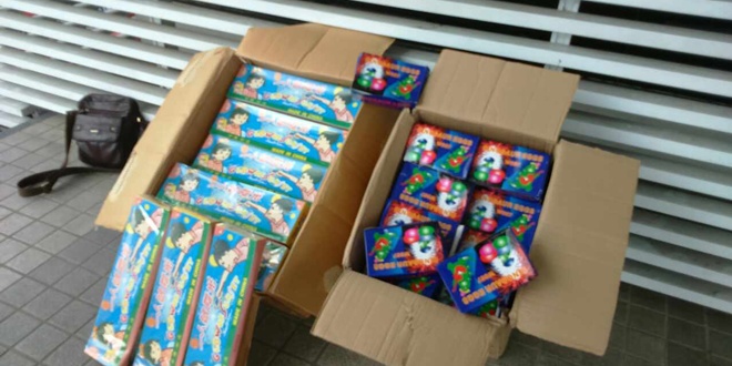砂拉越中砂 水警巡逻快艇码头 意外起获2箱烟花 2015年1月15日 被起获的2箱烟花。 (本报诗巫14日讯) 数名水警今早到快艇码头展开检查行动时,意外起获2箱烟花。Advertisement 今天上午大约10时,3至4名水警到诗巫快艇码头进行巡逻,发现有2个可疑的箱子置放在手推车上。 不过,现场没有人要承认是这2箱东西的主人。水警打开查看,发现里面全是烟花。 已置放在手堆车上的2箱烟花,不排除是要搬上快艇载送往加帛。物主可能是看见水警到来,临时将2箱烟花弃置在那儿。 之后,水警即将这2箱来历不明的烟花送往中央警署,交予警方查办。