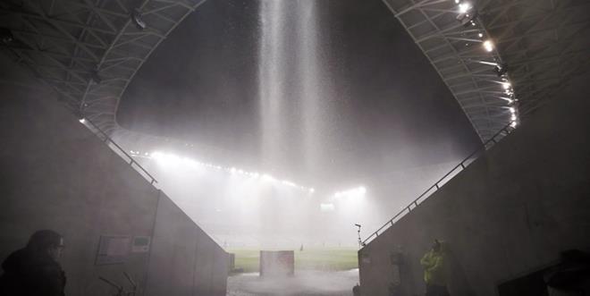 由於雨势过大,当值主裁最终决定中断比赛,將未完成的下半场比赛挪至之后合適的日期。