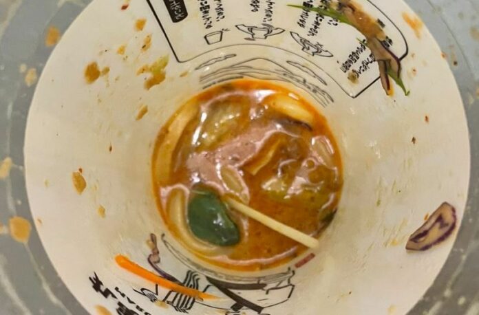 这名网友吃的「丸龟摇摇乌龙面」是丸龟制面5月16日首度推出的外带限定产品,刚推出就深受消费者喜爱,在开卖3天内就卖出超过20万碗,在社群媒体上更是蔚为话题。而这款乌龙面类似沙拉,是将生菜、冷乌龙面以及酱料一同放进透明容器内,消费者食用前可以用力摇晃,代替搅拌。