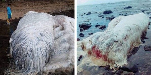 另外,英国《太阳报》报导,在同一年7月,民都洛岛(Mindoro)有居民也在海边发现一具长数公尺、全身长满白毛的「神秘海怪」尸体,诡异的外型引来许多人围观,众人纷纷拿起手机拍下这恐怖的一幕,有人认为这正是神话中预示天灾的海怪现身;也有人认为这是厄运征兆,未来恐有天灾将发生;不过有人则认为这只是海牛的尸体,呼吁大家别杞人忧天。