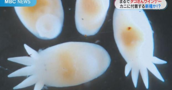 鹿儿岛大学研究所与鹿儿岛水族馆的研究团队,日前在当地被昵称为“山太郎蟹”的藻屑蟹上,发现一种新物种,该物种有着圆圆的头,还有短短的脚,模样就像是日式便当的经典菜色“章鱼小香肠”,游于是寄生在“山太郎蟹”上,因此又被命名为「山太郎寄生角虫(ヤマタロウヤドリツノムシ)」,该生物主要是以藻屑蟹表面上的碎屑为食。