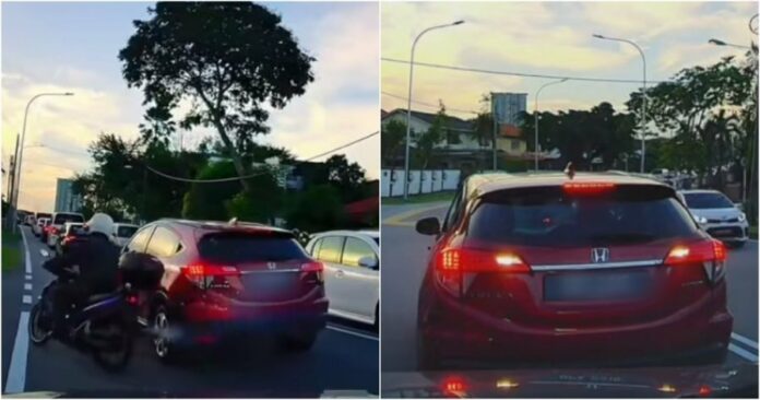 面子书专页《SUKAN STAR TV》昨日在社交媒体上载一段时长约2分零9秒视频,内容为一辆红色本田多用途休旅车,在行驶途中故意撞倒一辆行驶在逆向车道的摩哆后扬长而去,导致骑士摔倒在地。