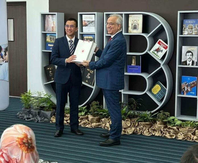 土耳其驻汶莱大使HAMIT ERSOY博士教授将书籍移交予汶莱大学副校长HAZRI HJ KIFLE博士。
