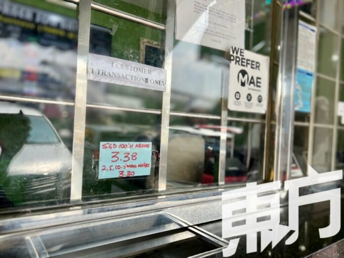 (新山27日讯) 新元兑换令吉持续强劲,一度突破3.41的关口,虽然新加坡出现令吉卖断货的情况,但本地不见兑换令吉人潮,受访本地钱币兑换商透露,不少大马客工已改为通过银行账户线上跨境汇款,实体兑换现金的顾客明显减少。