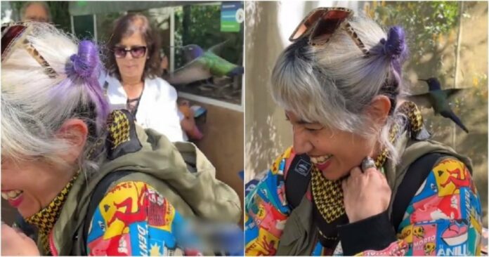 阿根廷一名艺术家日前到巴西伊瓜苏旅游,在参观鸟类保护区时,突然飞过来一只蜂鸟,不断往她的头部攻击,让她感到很困惑!众人仔细一看才发现,原来艺术家头发染成渐层紫色,又绑著包包头,外型看起来像花朵,导致蜂鸟误认,让人直呼非常有趣。