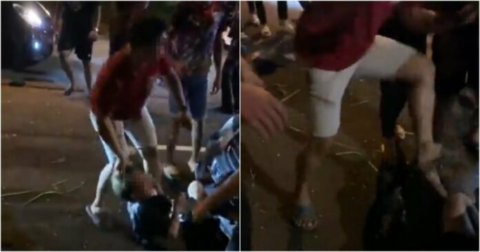 在疯传的28秒视频中,受害者蜷缩在地,围在其身边的多名男子对他拳打脚踢,更有一名红衣男子抓著受害者头部撞向停在前方的车辆前端,造成受害者受伤痛苦掩脸哀嚎。