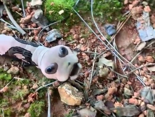 综合中媒报导,男子28日在公园拍下一段奇妙影片,其中可见一只灰色毛毛虫在地上蠕动前行,可奇特的是,灰色的虫体上有2道黑色花纹,头部像是外星人,又像是骷髅头,长相怪异。