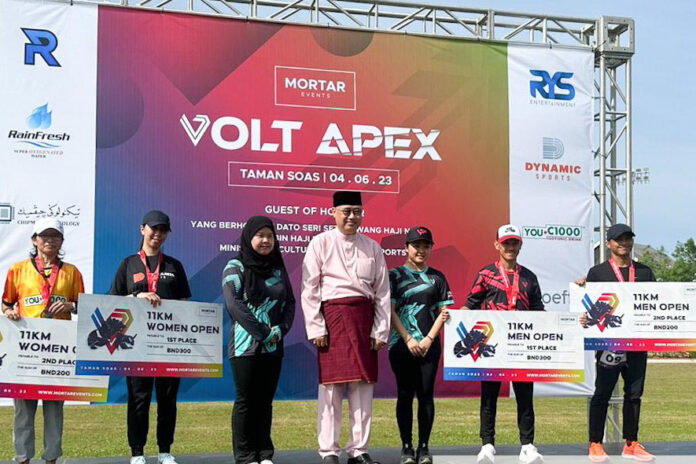 (汶莱斯市5日讯)鲁再尼和西蒂诺阿米拉昨早在斯市举行Volt Run: Apex活动中分别荣获男女公开组冠军并取走300元现金奖。