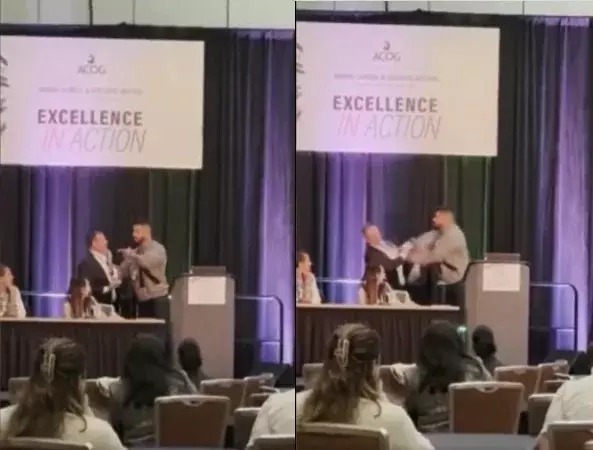 美国妇产科医师学会(American College of Obstetricians and Gynecologists)5月在马里兰州巴尔的摩举行学术会议,不过在会议进行期间,却有一名男子冲上台打医师巴掌,甚至怒吼「这个人七年前对我的妻子进行性侵」。