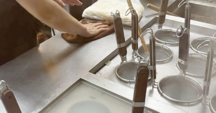 台湾台北市知名牛肉面昨遭外送员爆料,员工将擦拭煮面台面的抹布水,拧进煮面锅里。