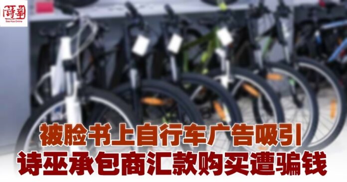 砂拉越中砂 被脸书上自行车广告吸引 诗巫承包商汇款购买遭骗钱 2023年6月6日 (诗巫6日讯)网上购物诈骗何其多。Advertisement 一名51岁承包商在脸书看到一辆售价1700令吉的自行车,心动了,这一心动让他损失了1700令吉。 他是于日前在甘蜜路住家浏览脸书时,就被一辆自行车的广告所吸引,他立刻致电联络卖家,获知该自行车售价1700令吉。 他当天就把钱钱转去对方指定的银行户口,然后他收到追踪号码,但是他发现对方将他屏蔽了,手机及脸书都不能联络对方。 直到今天他没有收到自行车。因此,他报警求助。