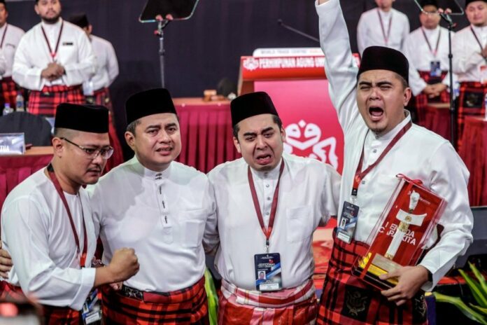 巫青团团长阿克玛今日在吉隆坡世界贸易中心举行的2023年巫青团代表大会上,将奖项颁发给了纳吉布的儿子拿督模哈末尼扎尔。